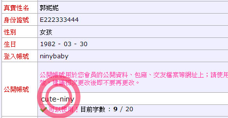 在會員檔案資料中,新增了『公開帳號』項目,用於您會員的公開資料、包廂、交友檔案等網址上;公開帳戶的設定可以避免會員的登入帳戶被猜測。例如小明的登入帳戶為 little_ming ,但公開帳號設定為 ming_wang ,這樣一來網頁及網址上都會顯示 ming_wang ,比較不容易被猜出登入帳戶。